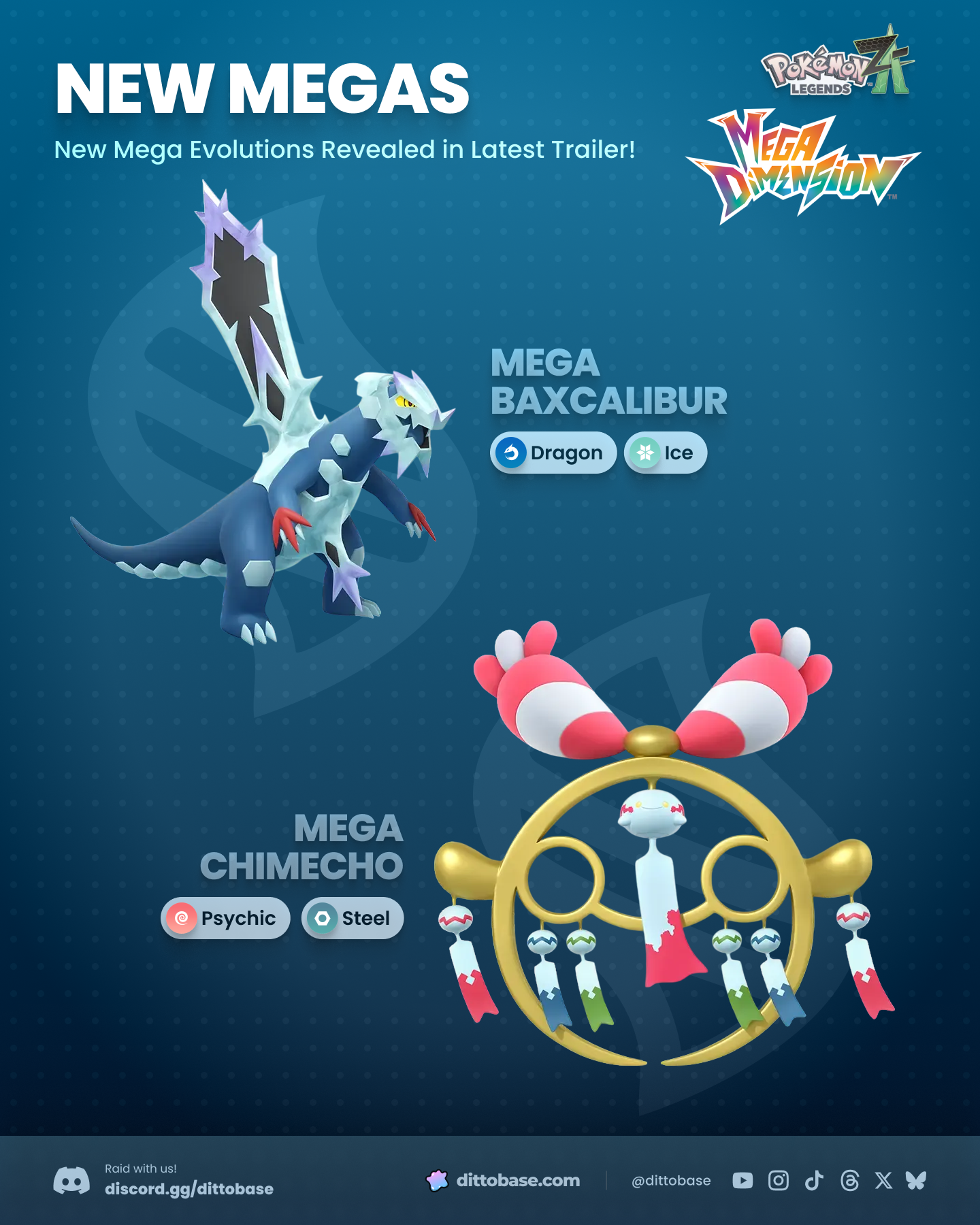 Two new Mega Evolutions have been revealed as part of the latest Pokémon Legends: Z-A Mega Dimension DLC trailer. Mega Baxcalibur and Mega CHimecho debuted on the official Pokémon YouTube channel earlier this morning.