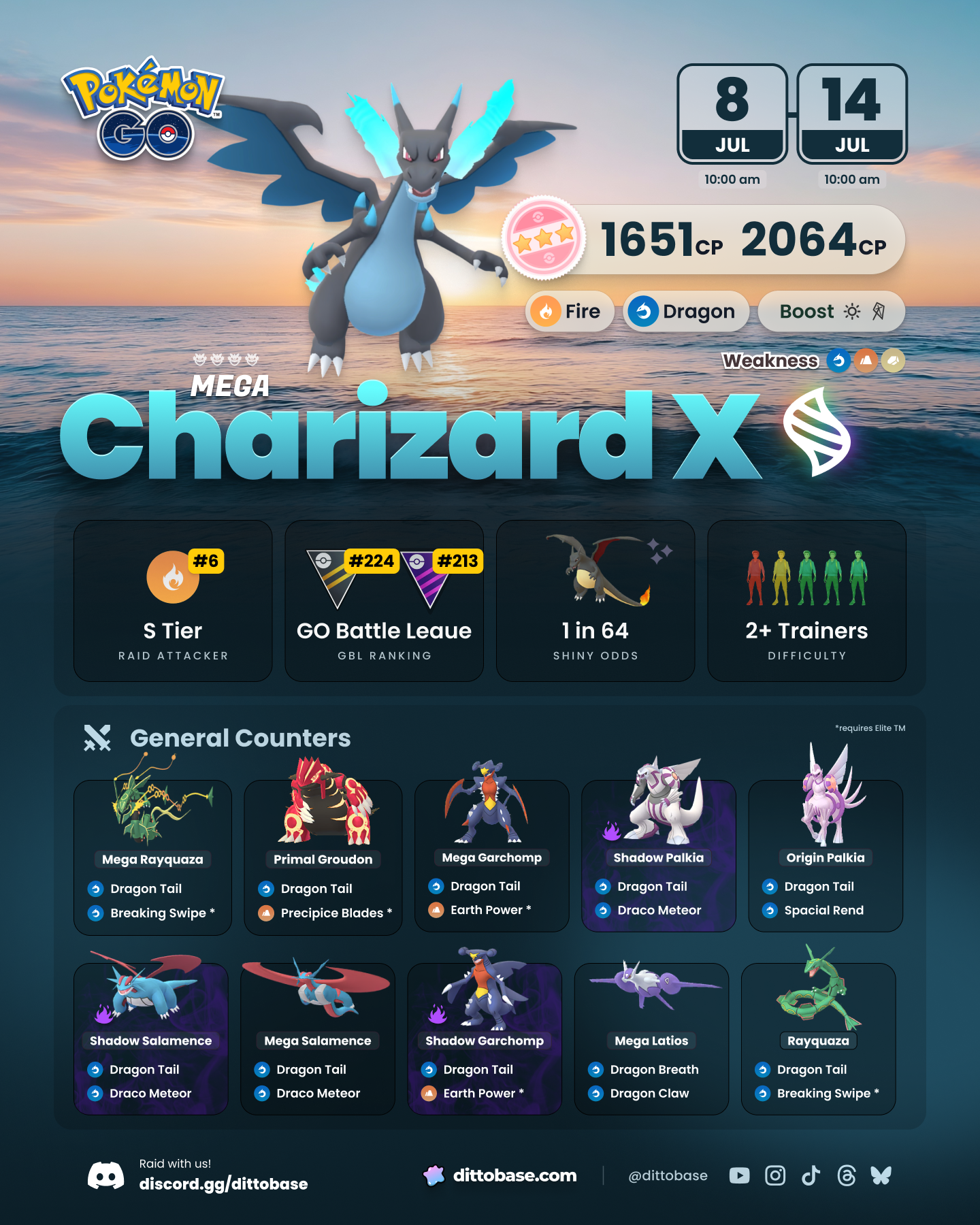 Mega Charizard X✨ will be appearing in Mega Raids from July 8th at 10:00 a.m. local time to July 14th at 10:00 a.m. local time.