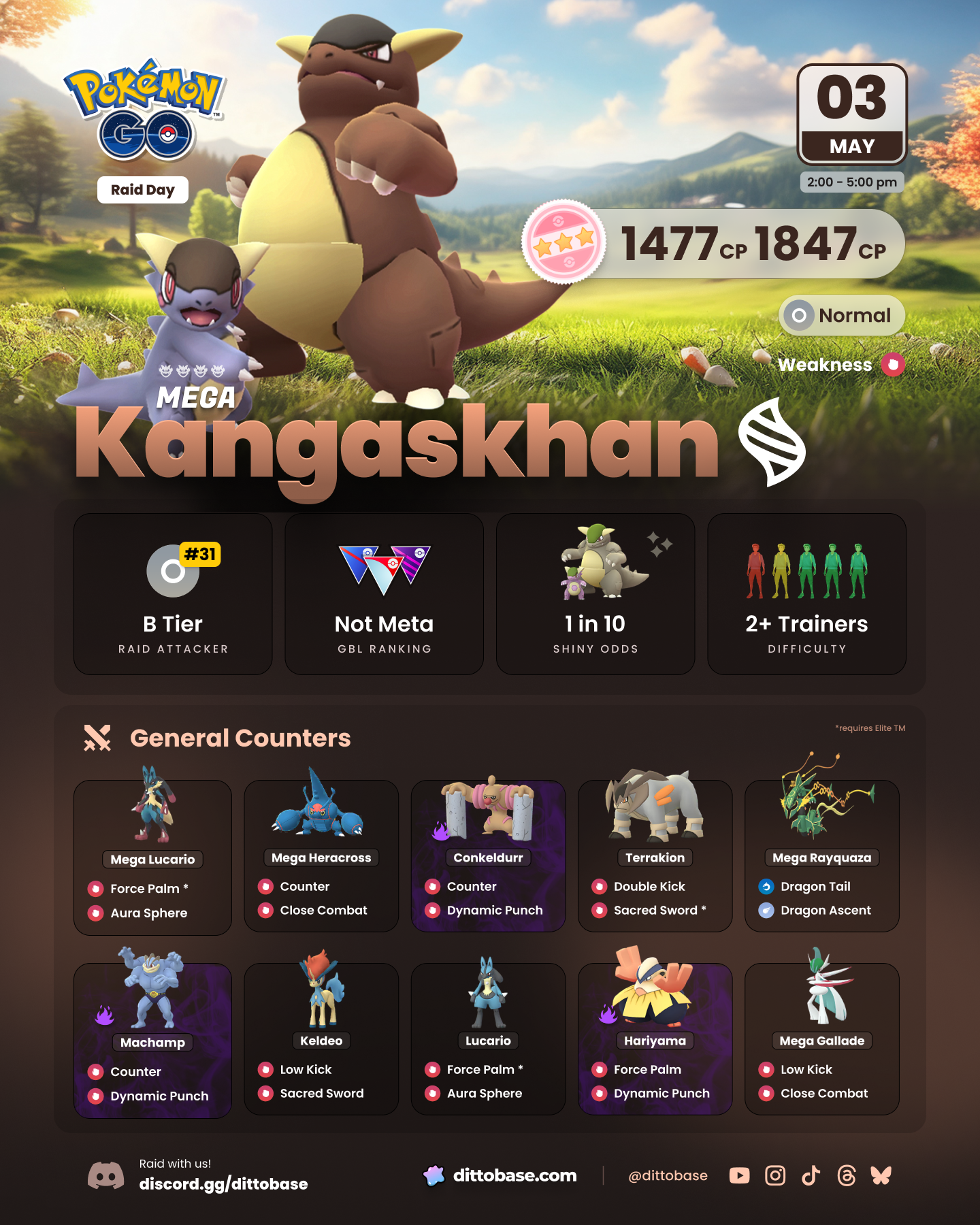 Mega Kangaskhan Raid Day will happen on Saturday, May 3, 2025, from 2:00 p.m. to 5:00 p.m. local time.