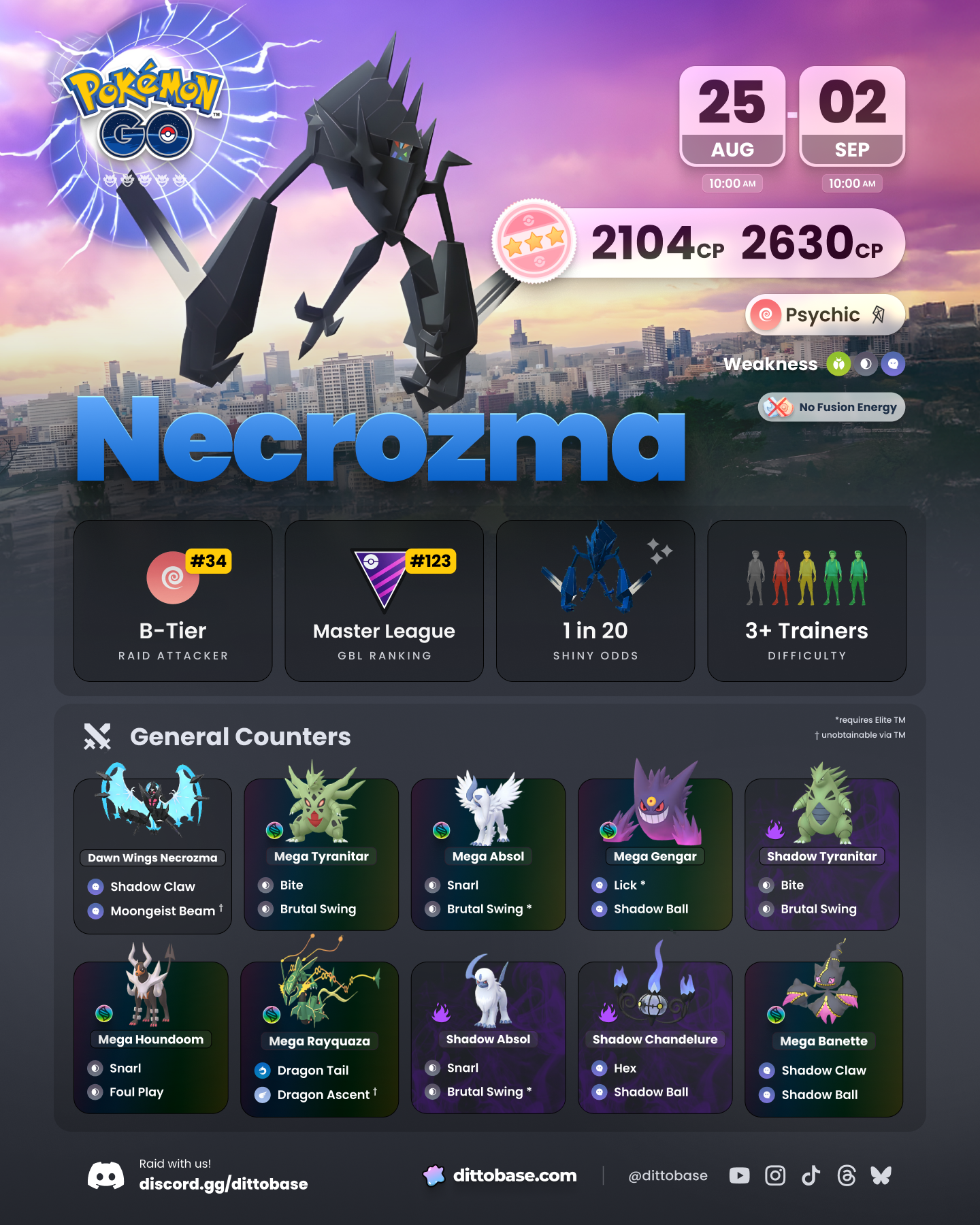 Necrozma✨ will be appearing in 5-Star Raids from August 25th at 10:00 a.m. local time to September 2nd at 10:00 a.m. local time.