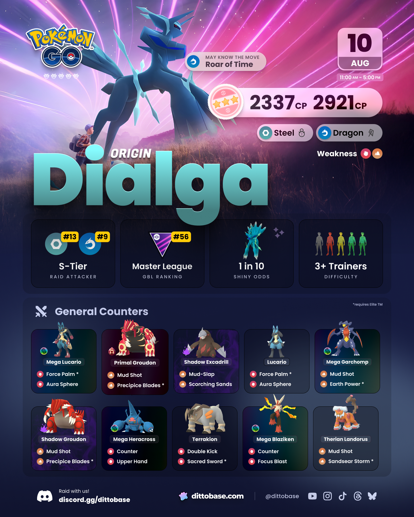 Origin Forme Dialga encountered in raids may know the Charged Attack