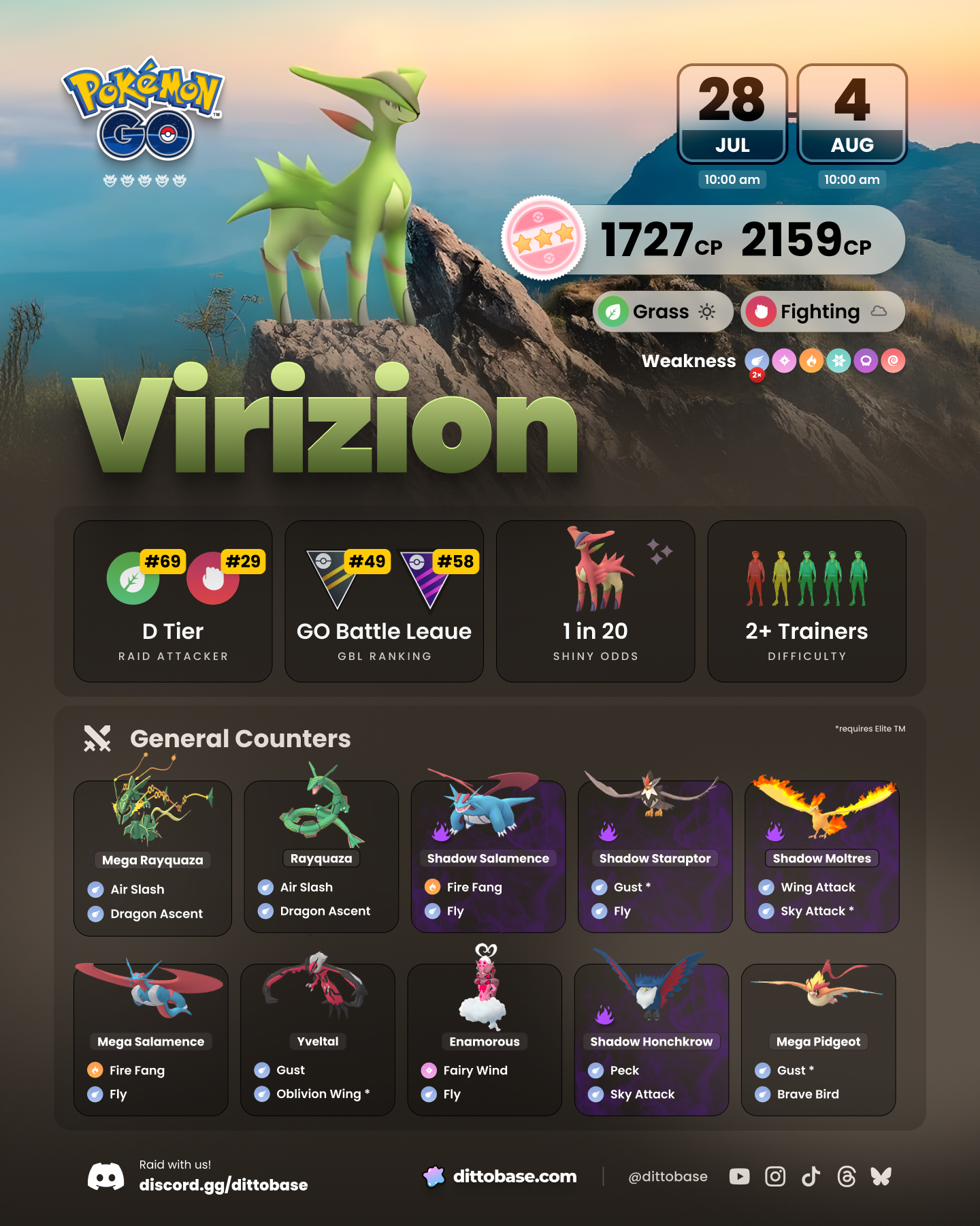 Virizion✨ will be appearing in 5-Star Raids from July 28th at 10:00 a.m. local time to August 4th at 10:00 a.m. local time.