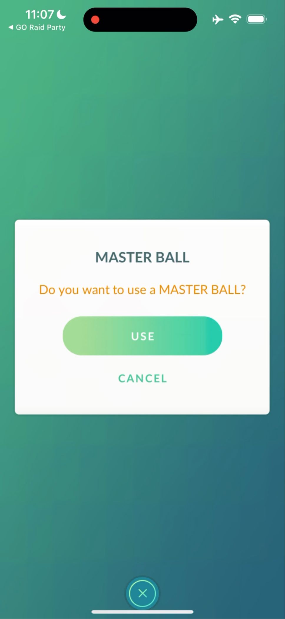 Tap the Poké Ball in the bottom right and select Master Ball. A confirmation screen will appear, forcing the trainer to confirm they really want to use the Master Ball.