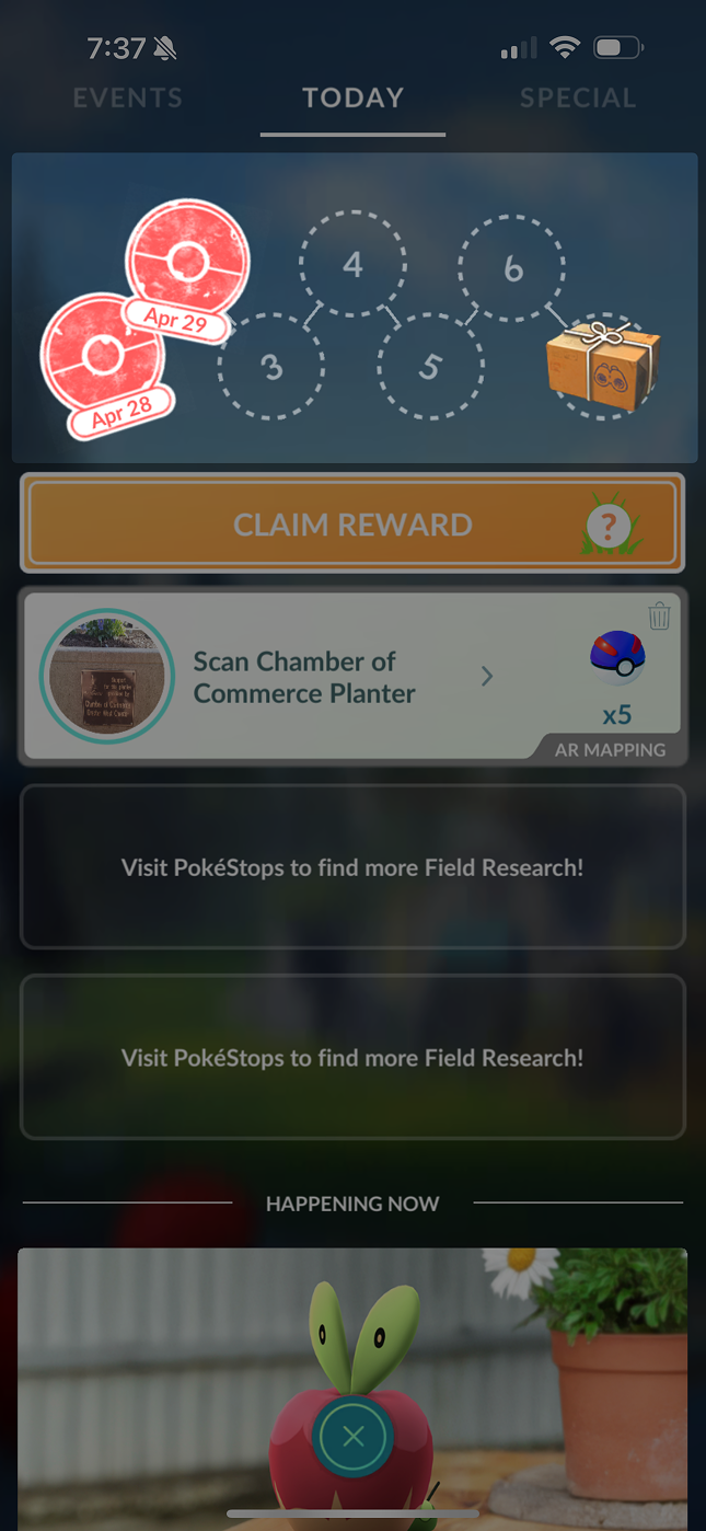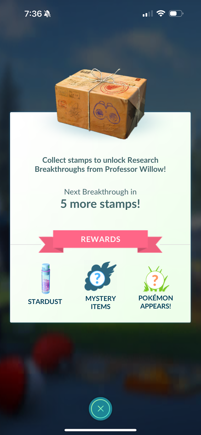 After completing Field Research Tasks on seven different days, players are rewarded with a Research Breakthrough Reward from Professor Willow.