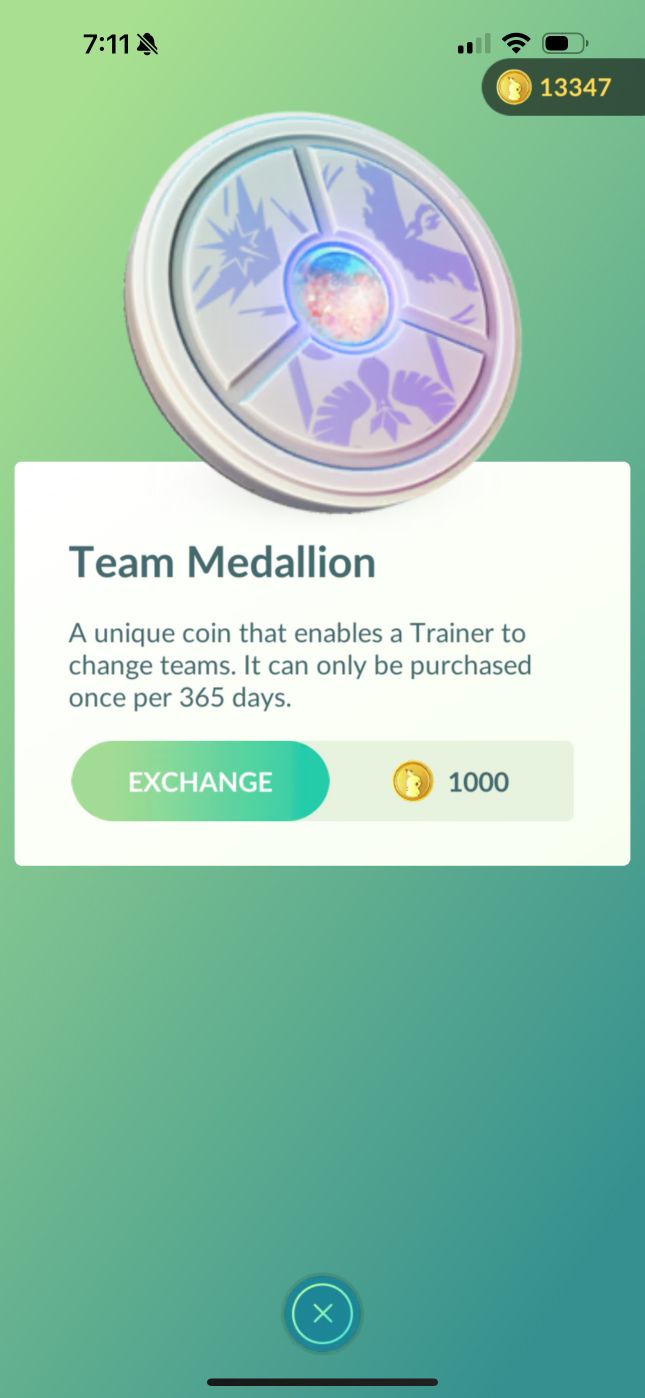 A unique coin that enables a Trainer to change teams. A Team Medallion can only be purchased from the shop once per 365 days.