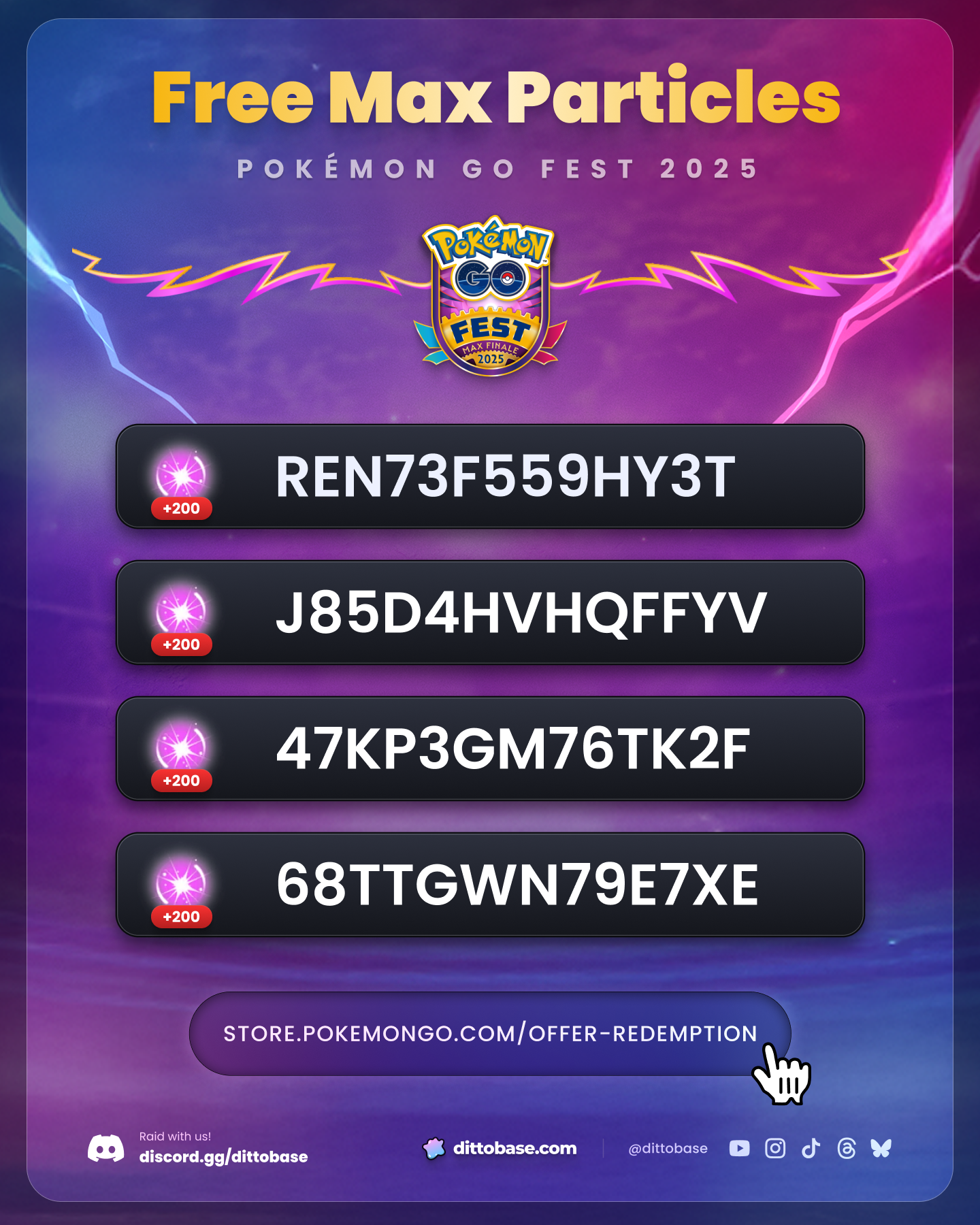 Pokémon GO will be giving away four different free codes for 200 Max Particles each.