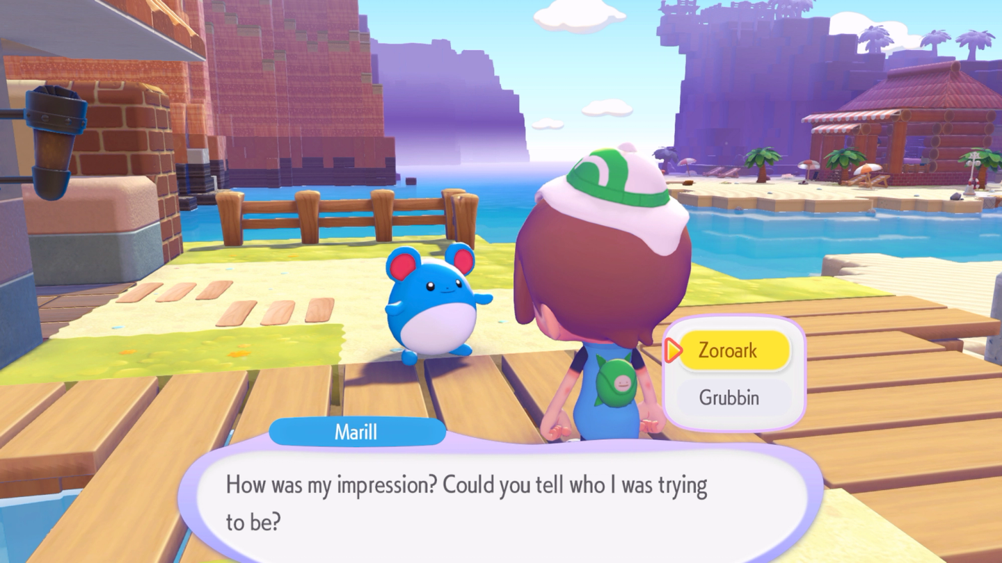 When you talk to them, they’ll say something, and you’ll need to guess which of two Pokémon they’re imitating.